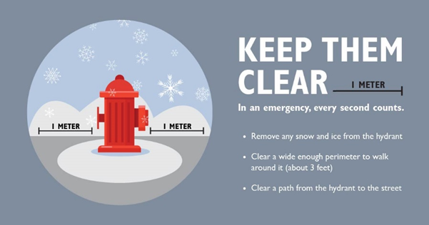 When an emergency occurs, fire crews rely on having access to fire hydrants to respond as quickly as possible. Every second counts – snow build up around the hydrant can result in delays to an emergency response.